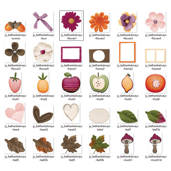 Whether you’re creating layouts, photo albums, greeting cards or seasonal journaling pages, this kit gives you versatile building blocks to craft heartfelt memories. Ideal for personal use, it brings together foliage, textures and warm tones to reflect gratitude and the beauty of autumn.