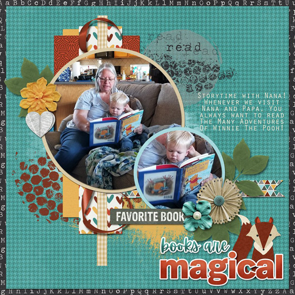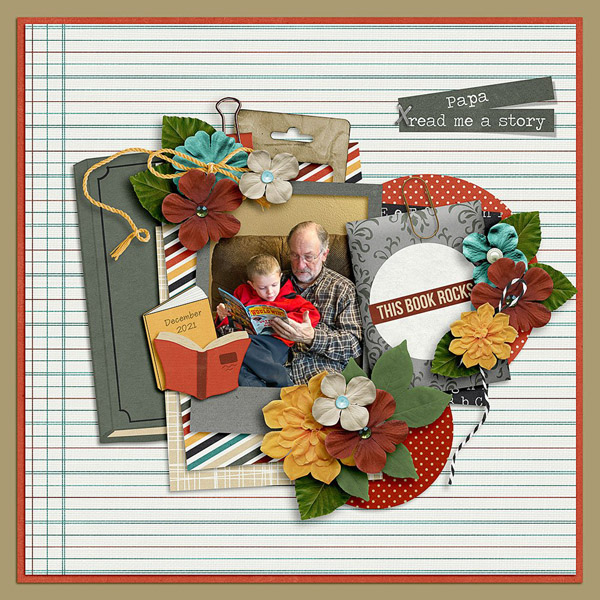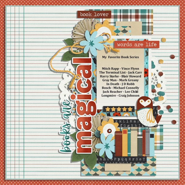 Between the Covers Page Kit contains 20 patterned papers, 10 solid card stock papers and 90 elements saved as individual files