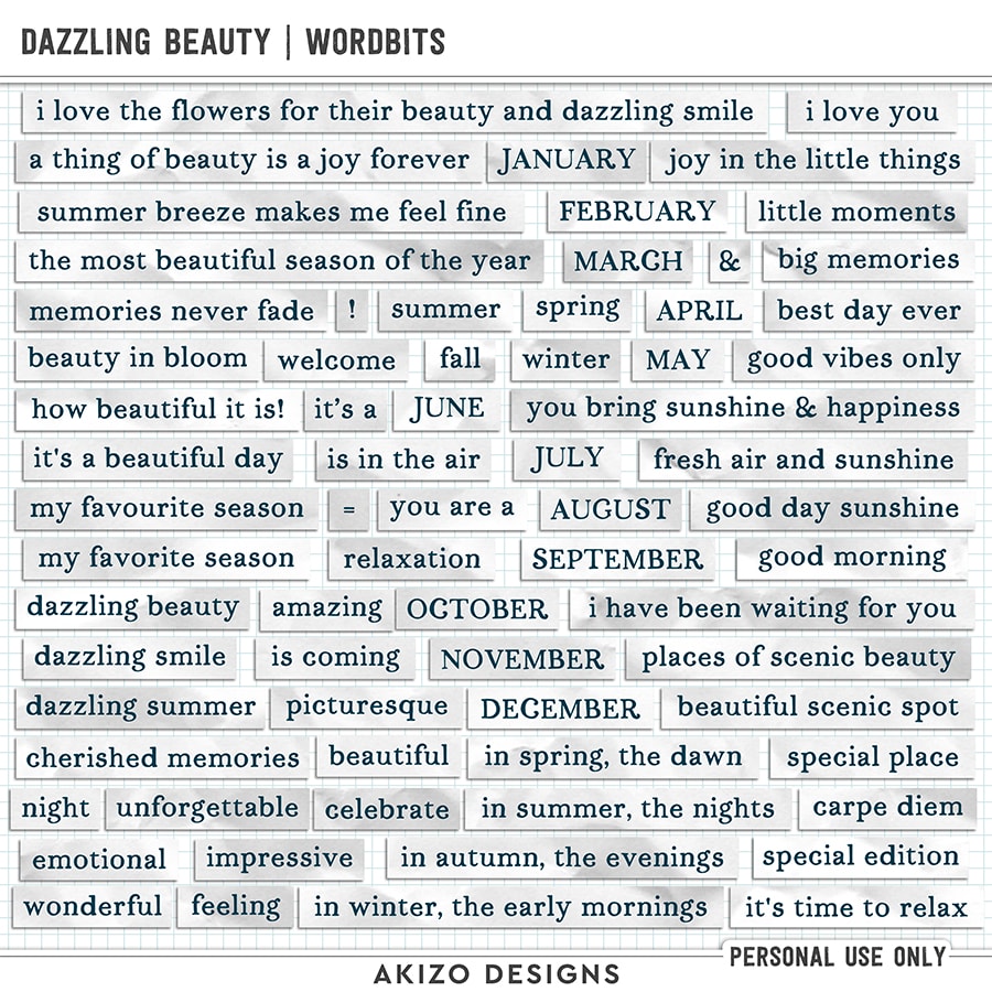 Dazzling Beauty | Wordbits by Akizo Designs For Digital Scrapbooking.