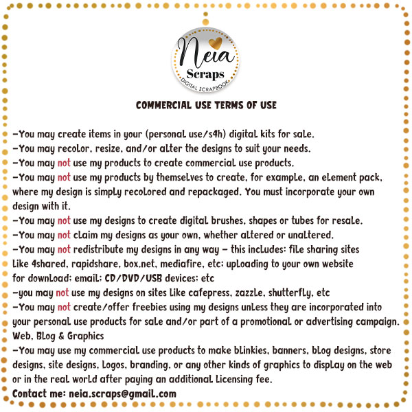 Any question, contact me: neia.scraps@gmail.com Please refer to CU TOU for more details.