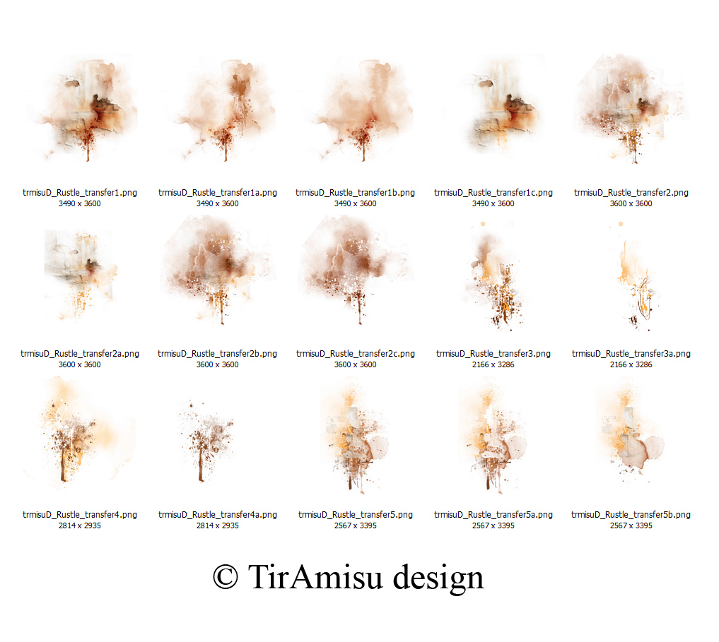 ➤ 5 PNG format art unique transfers (includes variations), 17 PNG files in total.