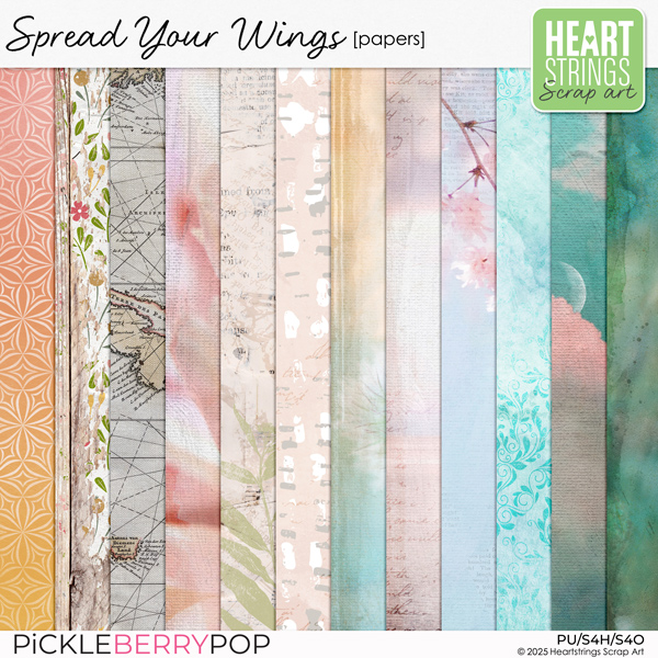 Spread Your Wings is a digital scrapbook collection that invites you to soar into creativity. Blending traditional charm with vintage ephemera and a touch of artistic flair, this collection features richly textured papers and timeless elements in a warm, dreamy palette of blues, browns, soft pinks and mustard yellow. Perfect for capturing moments of growth, change and adventure.