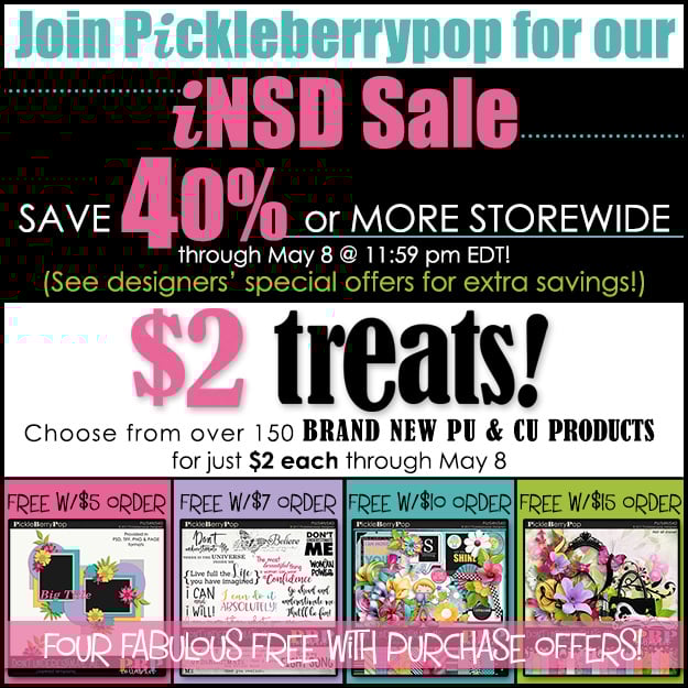 Be sure to use all of those gorgeous digi goodies that you bought at PBP during iNSD to participate in our May Mojo Challenges. You’ll be inspired by our our team’s creativity! You’ll have FUN & win prizes while you fill up your scrapbooks!