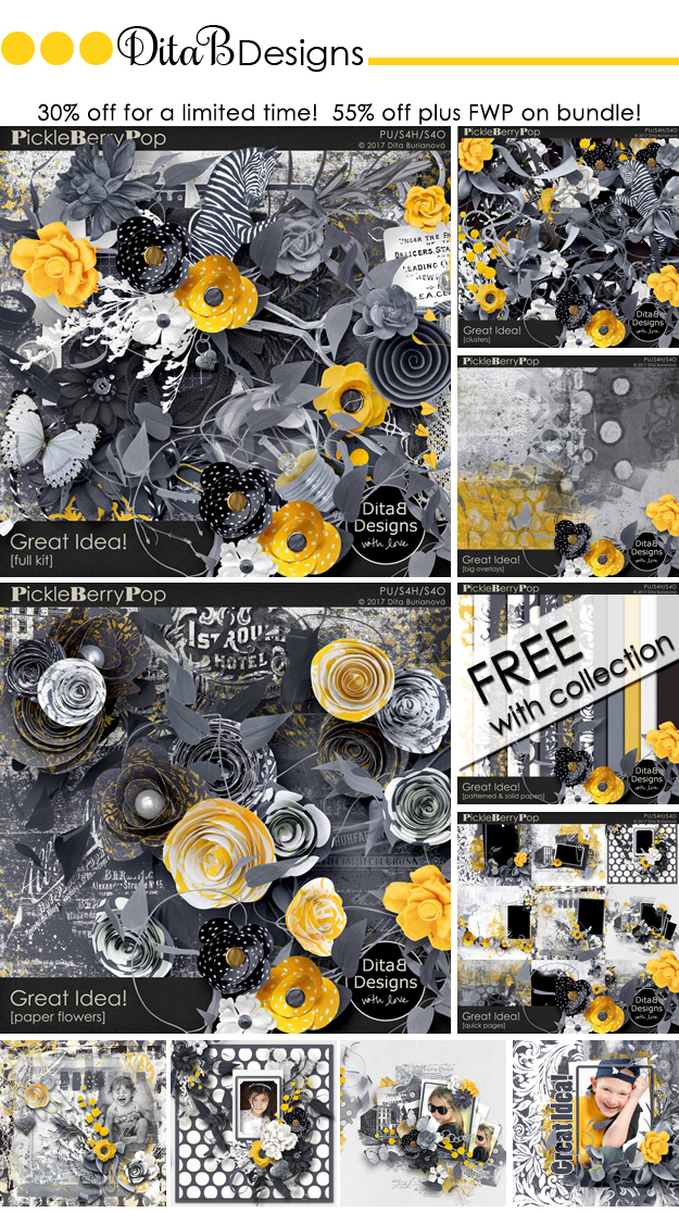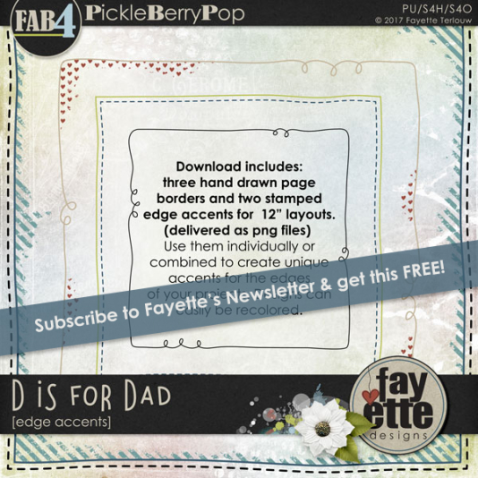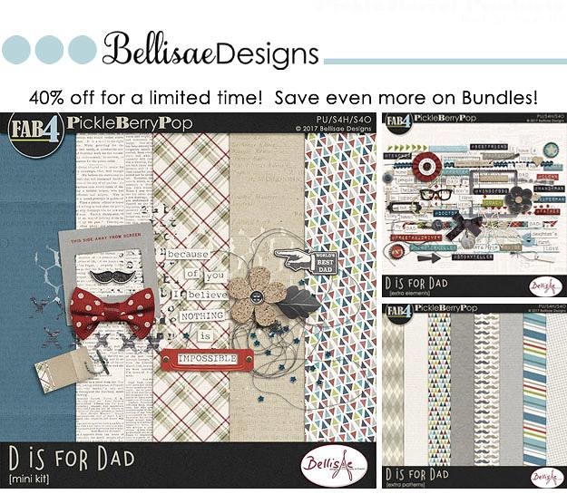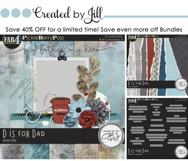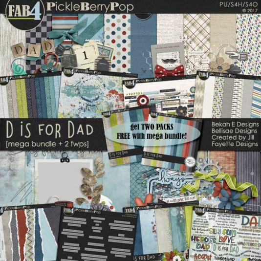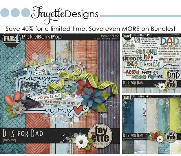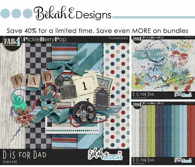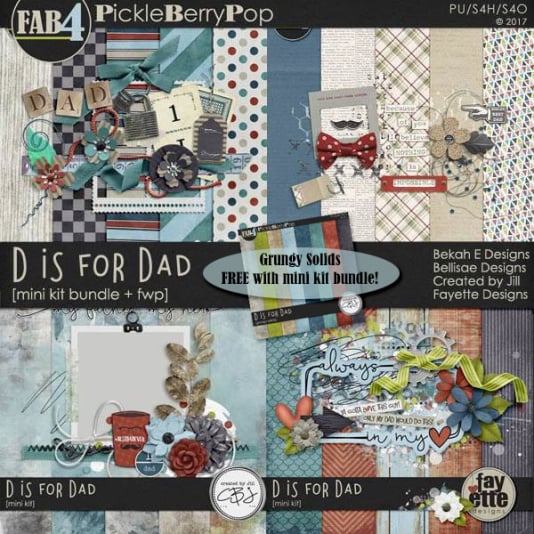 We think you’re going to absolutely fall in love with their FAB4 Collection, D is for Dad. Check out the Mega Bundle below – you’ll get all of the mini kits and add-ons and SAVE 58% PLUS you get TWO FREEBIES (BEST DEAL)! The Mini Kit Bundle is discounted 45% + you get FREE Paper pack, and the individual packs are discounted 40%! So get them while you can! They’re all on sale through June 3rd – 4 DAYS ONLY!