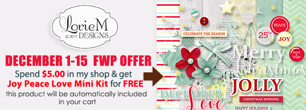 To make it even easier to earn the FWP kits, the designer’s shops that contributed to Kit #1 are all DISCOUNTED 40% through December 6 (see links and green buttons below sale ad)! Take advantage of this sale and pick up anything you may have on your wish lists from these designers!