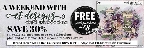 Spend $8 in Erika’s personal and/or commercial use shops this weekend and you’ll get this exclusive mini kit, Joy, FREE! She’s also created a brand new collection called Let it Be to help you reach that minimum purchase. PLUS if you spend $20 or more on her products you’ll automatically save an additional 10%!
