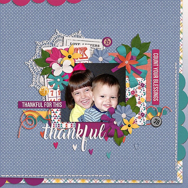 30 Days of Thanks Kit includes 18 patterned papers in JPG format, and 55 elements in PNG format