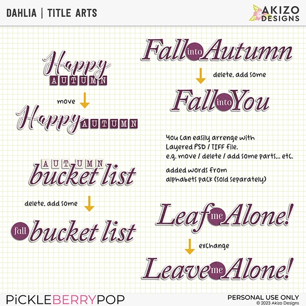 Title List: Autumn Bucket List, Autumn Is In The Air, Fall Into Autumn, Fall Memories, Happy Autumn, Happy Fall Y'All, Hello October, Leaf Me Alone, November Story, October Fest, Precious Moments, Season Of Change, The Beauty Of Fall, Touched By Fall