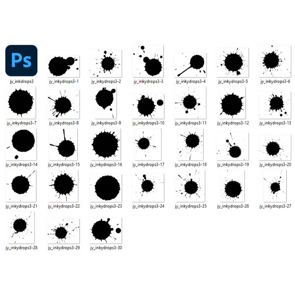 30 ink drops in both PNG and ABR format