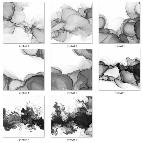 Eight 12 x 12" inky paper overlays in JPG and transparent PNG formats