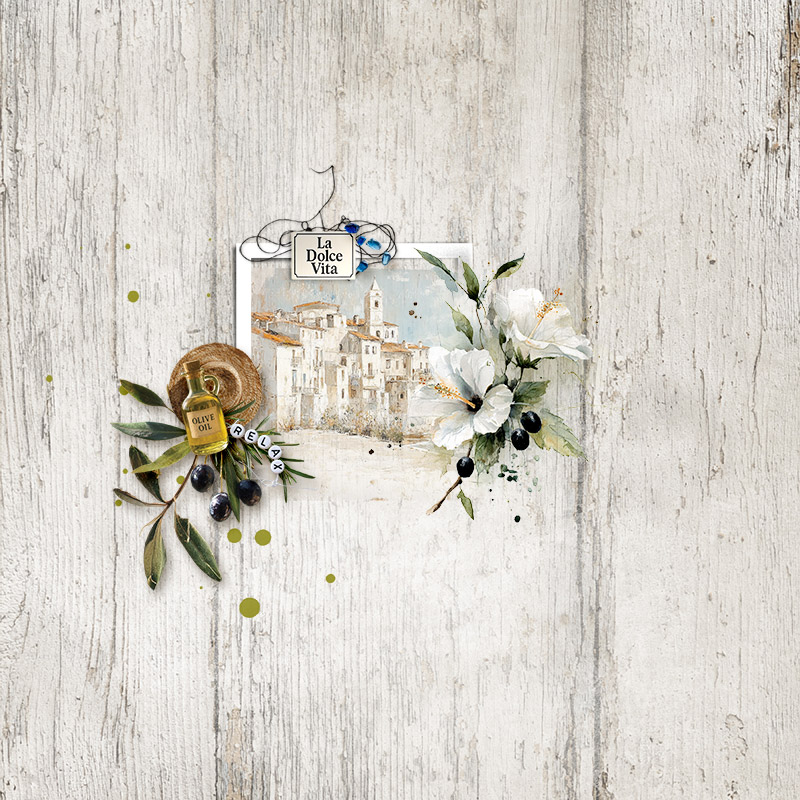 A versatile collection of elements with flowers, olives, citrus, and Mediterranean details for unique compositions.