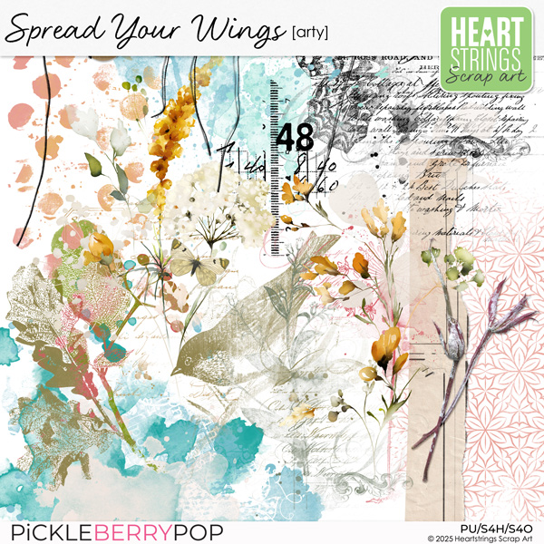 Spread Your Wings is a digital scrapbook collection that invites you to soar into creativity. Blending traditional charm with vintage ephemera and a touch of artistic flair, this collection features richly textured papers and timeless elements in a warm, dreamy palette of blues, browns, soft pinks and mustard yellow. Perfect for capturing moments of growth, change and adventure.