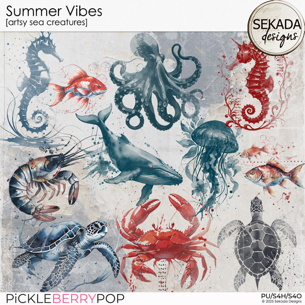 - 11 artsy sea creatures which perfectly coordinate with this collection. All saved as .png files at 300dpi